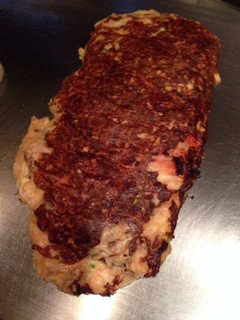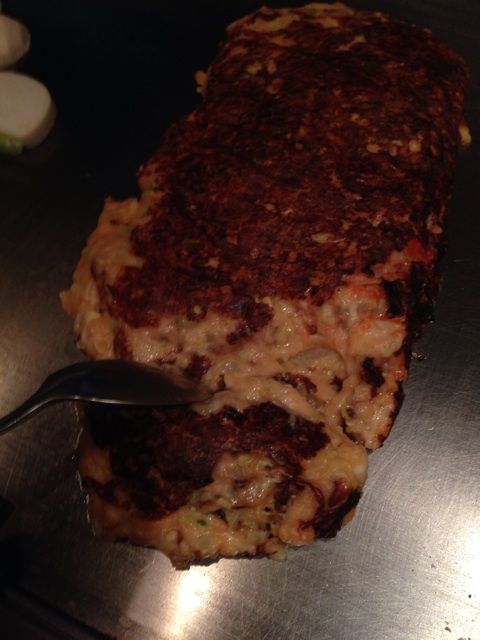 写真では、一瞬ステーキのように見えますが、ドロリとした質感で、焦げ目がしっかり付いています。