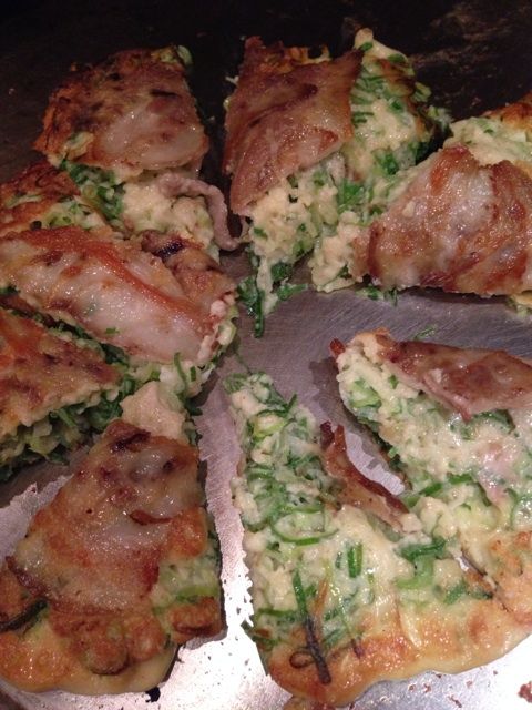 関西人に見られると「何だこの切り方は!?」と怒られそうなピザ切りしちゃいましたが、キャベツではなくネギがたっぷり入ったねぎ焼きは、これもサッパリといただけるおいしい粉モンですね。