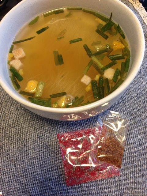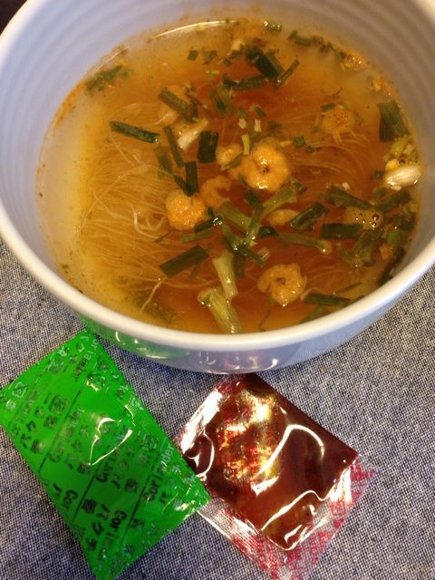 「トムヤム春雨」の粉末スープを半分にし、かきたまを加えてみました。