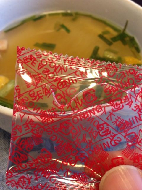 食べ方は、ドンブリに春雨とかやくと粉末スープを入れ、熱湯350ccを注ぎ、2分待つ。