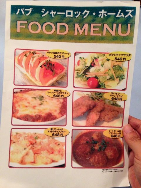 メニューはこのとおり。「PUBシャーロック・ホームズ」と同じメニュー表が用意されています。
