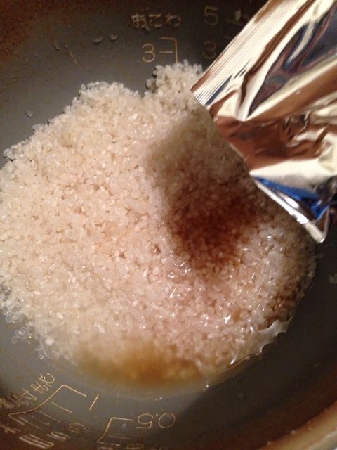 2合のお米に対して出汁パックをあけ、