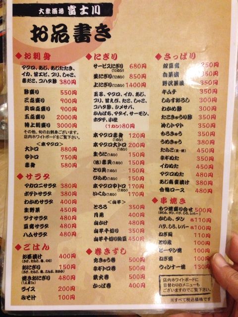 JR大森駅東口のアーケード、その中腹に、なんとも吸い寄せられざるをえない赤ちょうちんが並んでいるお店「富士川」があります。