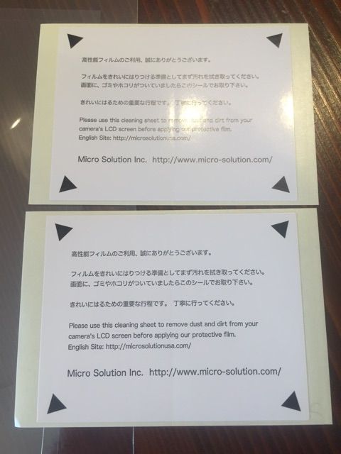 パッケージの中身はこんな感じです。液晶保護アンチグレアシート1枚と、ダスター。そして何やらシールが2枚。