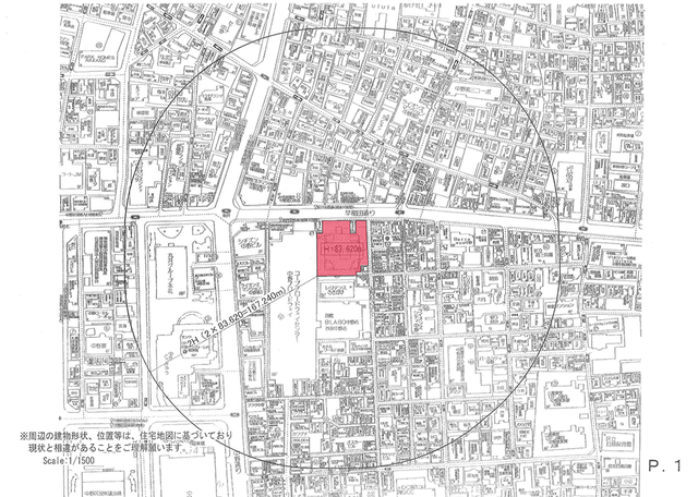 (わかりやすくするために、建築計画のある敷地を赤く塗りました。)