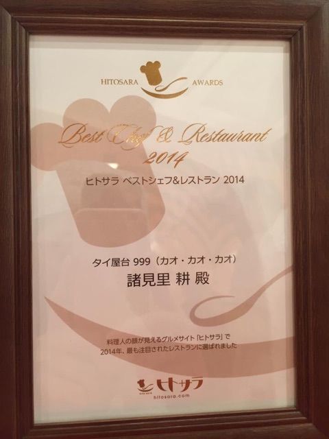 中野で唯一!2014ベストシェフ受賞!「タイ屋台999(カオカオカオ)」開店3ヶ月の快挙