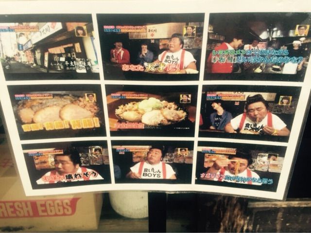 店先のテレビの画撮写真。グルメレポーターと言えば! の石塚英彦さん。
