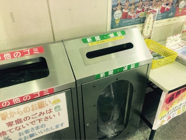 (参考)駅の新聞・雑誌ゴミ箱が駅員によって手作り改造されていた