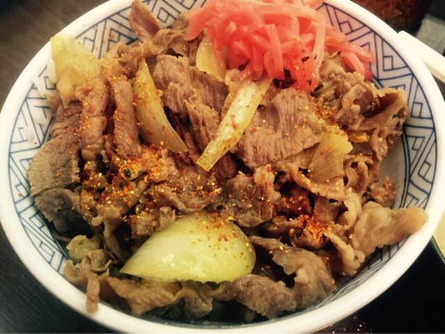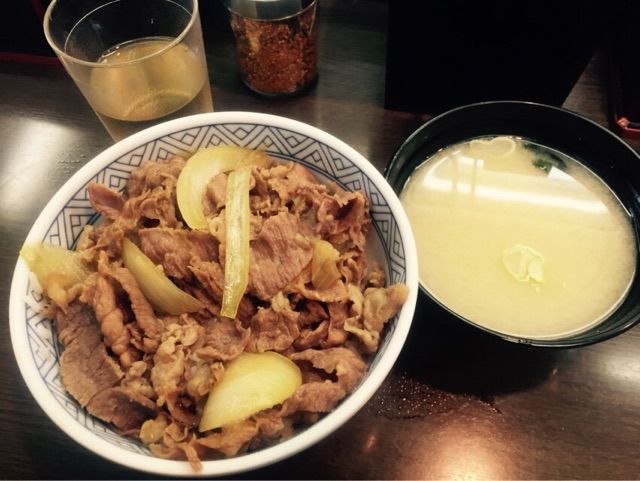 260円のデフレ価格ながら、肉は多く、そして店員さんが最後に丁寧にすくってトッピングする玉ねぎの配置が美しい。