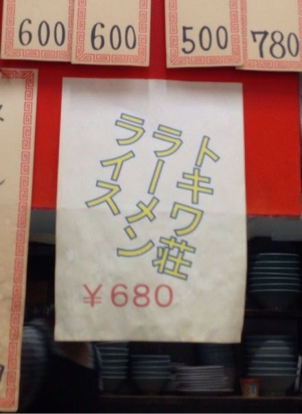 ちなみにこの時、約2年前。いただいた「トキワ荘ラーメンライス」は当時680円でしたが……