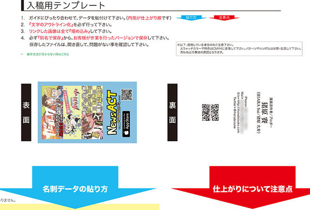 Photoshopで作った画像にしろ、Illustratorで作ったデザインにせよ、最終的には「名刺shop.com」がサイトで配布しているIllustrator(ai)形式テンプレートに貼り付け、上書き保存したデータを入稿する必要があります。