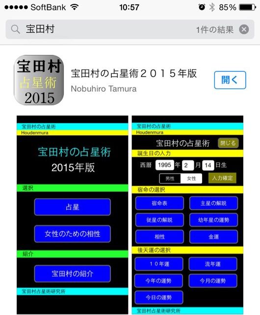 ・2015年3月 「宝田村 占星術」iPhone版 リリース