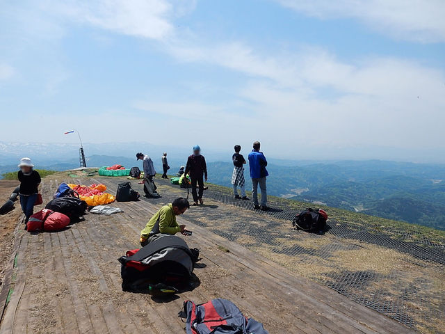 残念ながらこの日は凪。私のいた時間帯に飛んでいる方はいなかったのですが、遠くに日本海を眺めるこの眺望は、最高。