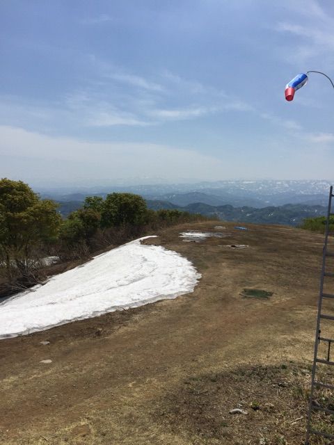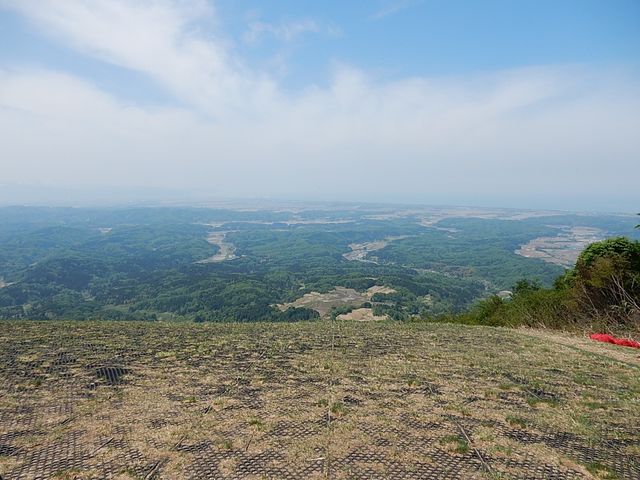 尾神岳のパラグライダー離陸場。眺めもよろしい絶景スポット。ここから左を向いてみると……