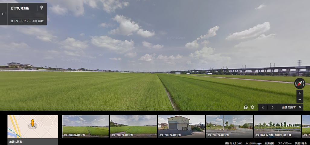 (Googleマップ・ストリートビュー「埼玉県行田市野」)