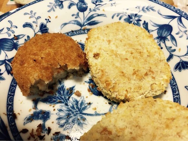 これは油で揚げて調理するタイプのコロッケ。左は実際に油で揚げたコロッケで、右がオイルカットフライヤーで調理したもの。さすがに衣の「キツネ色」は、温風ひとつでは再現出来ず、か。