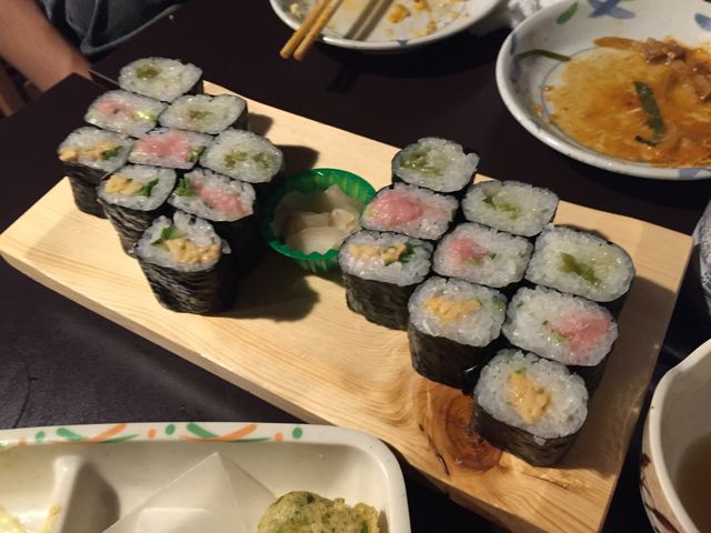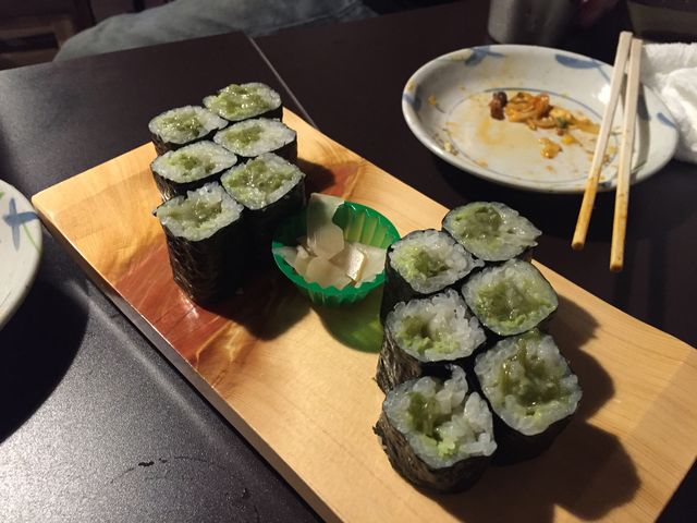 わさびの強烈な刺激にノックアウトされた「わさび巻き」は、追加で二人前。しかも「わさび多めで!」というコールが通りました。これ、罰ゲーム並みにわさびの刺激強いです。この日5人で「とんぼ」襲撃しましたが、一人完全に返り討ちにあって撃沈、とても人前では見せられない苦悩の表情を見せておりました。