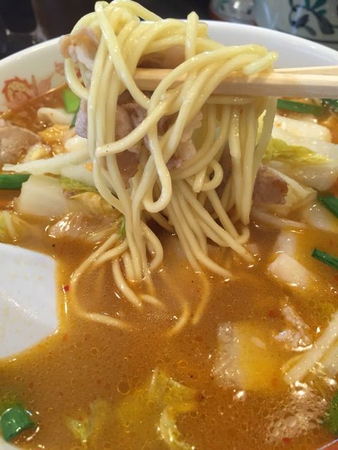 が、大量にトッピングされた具はストレートの中細麺と共にリフトアップ。なかなかに食べごたえのあるラーメンです。