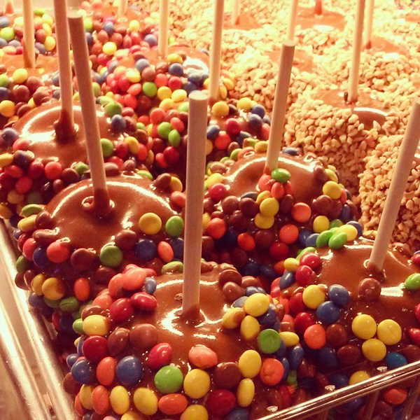 りんご飴にチョコやチョコクリームトッピングしちゃう激アマ天国・アメリカ。(写真提供・小堀善友)