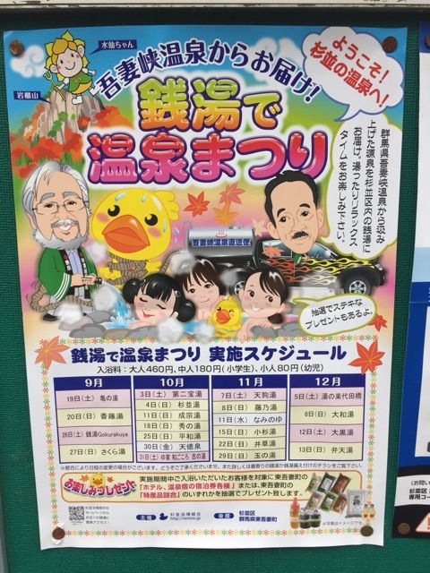 群馬県吾妻峡温泉から、温泉のお湯そのものを杉並区にお届け。9月より12月までの毎週末、杉並区内の銭湯持ち回りで、湯船にその温泉が注がれる……それが「銭湯で温泉まつり」。