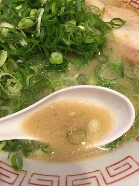 薄く油が張ったスープは、ややスッキリ目の味わい。私が博多ラーメンを本場の博多で食べたのは遠い昔……しかし、きっとこれが「普通」の博多ラーメンなんでしょうね。薄すぎず、クド過ぎず、なんか無限に飲んでいられそうな優しい味。それでいて確かに豚骨の旨味がにじみ出ております。