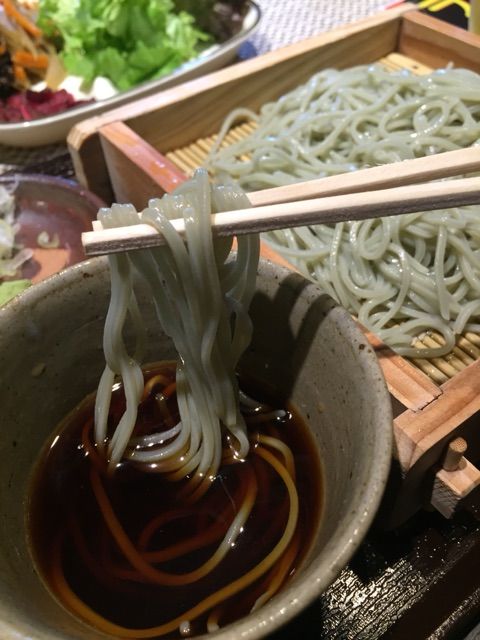 布海苔入りのへぎそば。きちんと「へぎ」に収められたへぎそば。ぬめりとコシの楽しめる、これだけでも軽いお昼ごはんになりそうな。