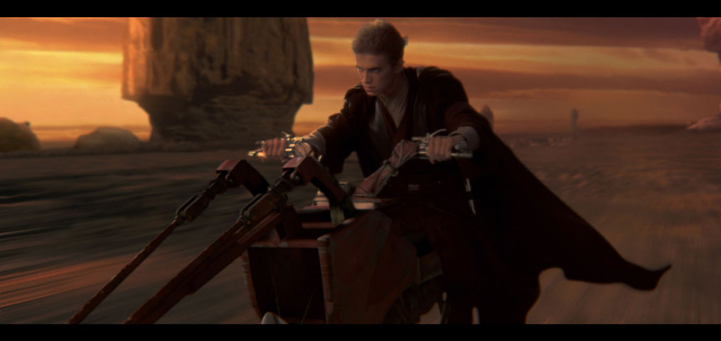 Ep.1からEp.2の流れでアナキンを見れば、ジャンク屋の車好きが、一芸入試で名門学校(ジェダイ)に入学したが、熱血先生も手を焼く校則を守らない不良少年に育ち、怨みを持ったら実力行使の暴れん坊で、叶わぬ相手にも喧嘩を売る。身の程知らずだから身分の違うお嬢様に惚れて、全力で口説いてものにするという、ヒーローとは程遠い、転落街道をまっしぐらに歩んでいる事にに気づくだろう。
