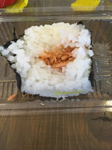 ぜったい普通のおむすびの倍の厚み。このサイズのおむすびが2個入って399円。お得過ぎんよ……。