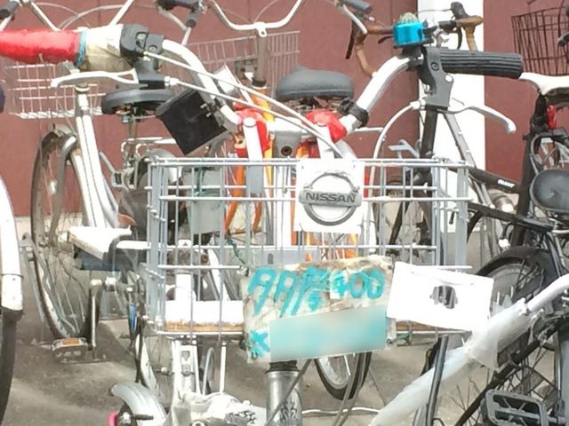 街で見かけた気になるものシリーズ。日産のクルマが好き過ぎる「痛チャリ」。