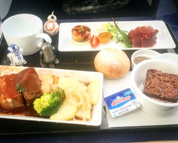 機内食とは思えぬ料理とワインのマリアージュを楽しんだ。