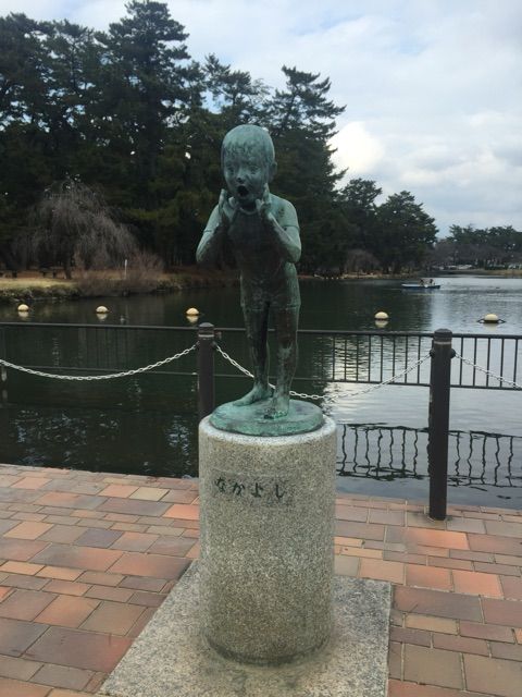 とある公園に設置されていた銅像。タイトルは「なかよし」。でもこれ……