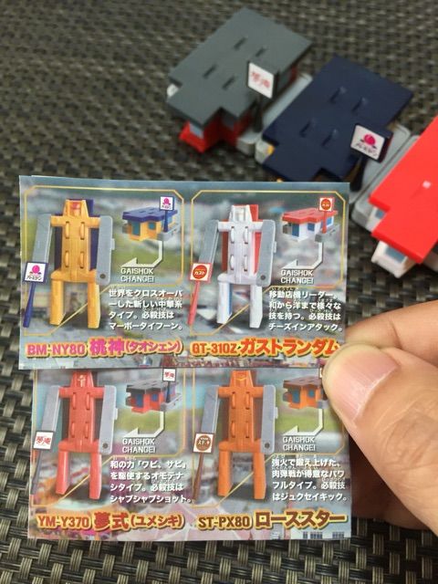 なんと、レストランの店舗が、ロボットに変形するミニフィギュアおもちゃですよ。1回200円。財布の中の小銭をかき集め、気付いたら3回ガチャってました。
