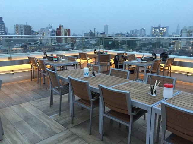 ビルの屋上にぼんやり見える明かりは、このテラス席の照明なのでした。