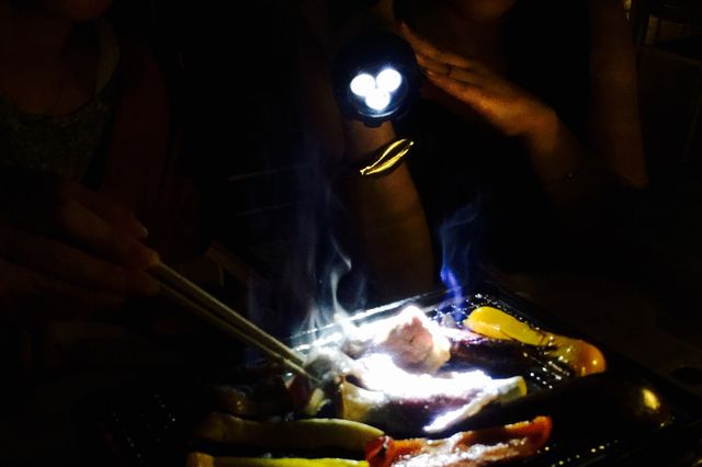 一切夜景を見ずに、お肉焼けたか!? 焦げてないか!? とソワソワ目をこらす我々を気の毒に思ったのか、店員さんが懐中電灯をソッと差し入れwwwww