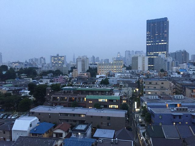 日も暮れ、新宿方面が“夜景”として立ち上がってくる。