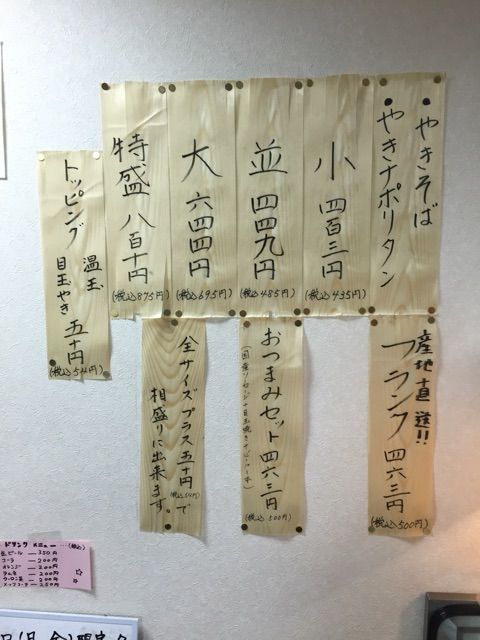 焼きそば(並・485円)+ナポリタン合盛り(54円)+おつまみセット(500円)+フランク(500円)で、1,539円のヒトサラ。(※缶ビールも込み。)単価1,000円を切る店で、ちょっとやり過ぎましたかね……w