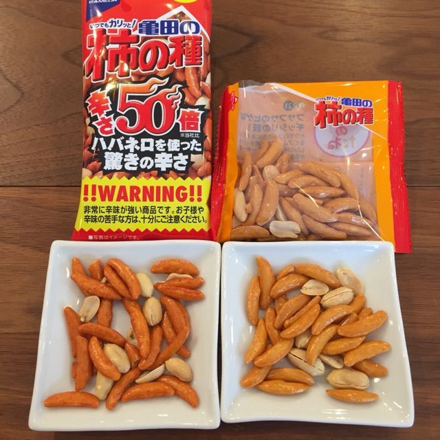 ★「亀田の柿の種辛さ50倍」を通常の柿の種と比べてみる