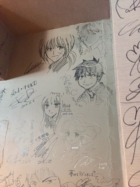 ここがウワサの肉山かあ……と、店内に入ると、まず驚くのが壁。いたるところにサイン、直筆イラスト。マンガ家さんが多数来店している様子。