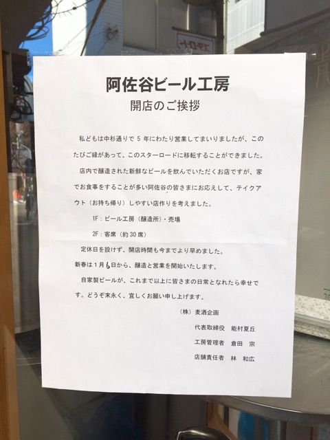 「阿佐ヶ谷ビール工房開店のご挨拶」。