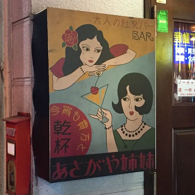 「大人の社交BAR あさがや姉妹」。こんな看板見れば、お笑いコンビ「阿佐ヶ谷姉妹」のご本人達や関係者がお店でも出したのかな? と思うじゃないですか。