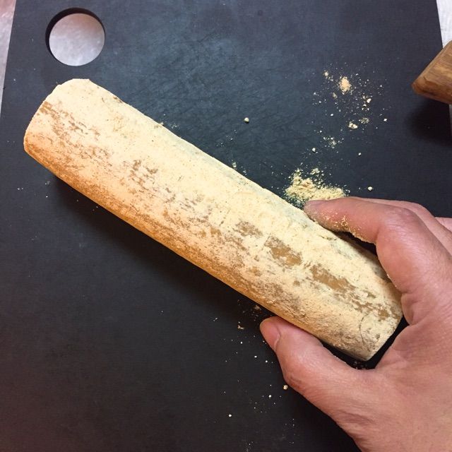 昨年末に地元に帰った際、五家宝の中でも特にインパクトある「五家宝 太巻」を買っていたのですが、すっかりその存在を忘れ、先日自宅のお菓子箱から発掘。