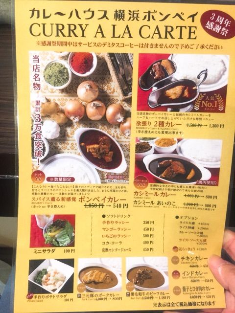 店内に入りメニューを拝見すれば、「ボンベイカレー」に限らず、その他のカレーも最大200円引き。