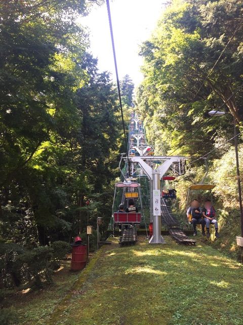 1時間の行列を並び、リフトに乗ったわたくし。リフト行列のほうが短いと見たんですが、駅舎からリフト乗り場までの列が長く伸びており、結果時間的にはケーブルカーとは変わらない印象。