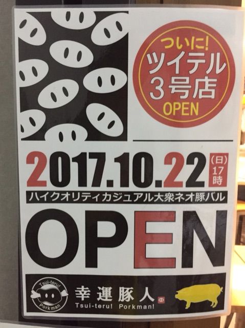 中野に熟成肉という食文化を持ち込んだ「Tsui-teru!(ツイテル)」が、バル・和に続く第3の店舗をオープン。「幸運豚人(Tsui-teru! Porkman)」という店名になるようです。