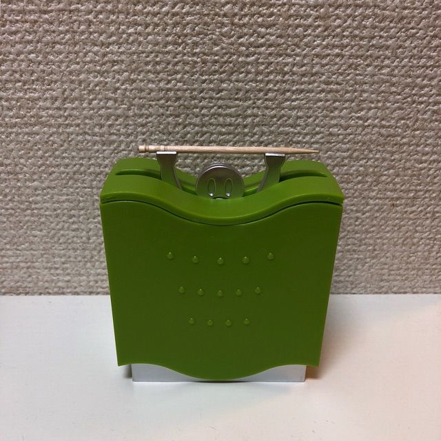 「トゥースピック・ホルダーマン」は、私が買った緑色と、オレンジ色の2色がありました。お値段は600円でお釣りが来るくらいの価格だったと思います。