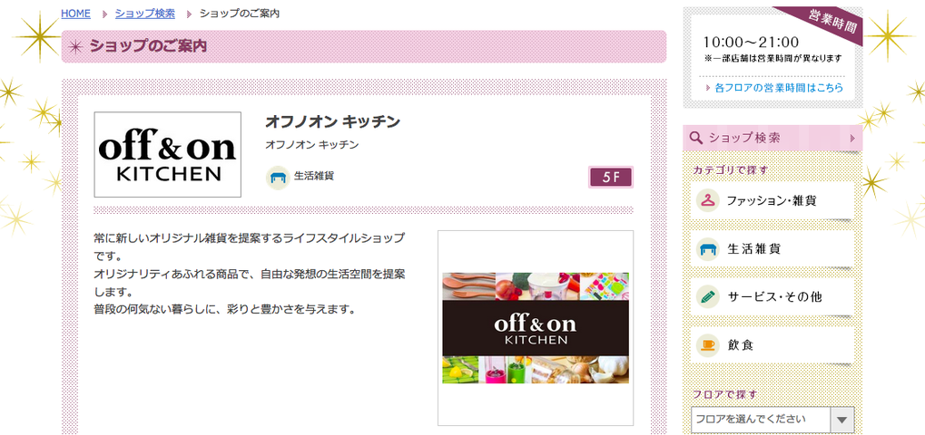 あ、ここだ。キラリナ5F・生活雑貨の「off&on KITCHEN(オフノオン キッチン)」。