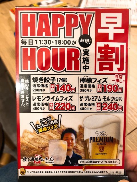 普通、ハッピーアワーとは、夕方のオープンから混み始める19時くらいに実施する居酒屋のサービスじゃないですか。「たっちゃん」おかしい。