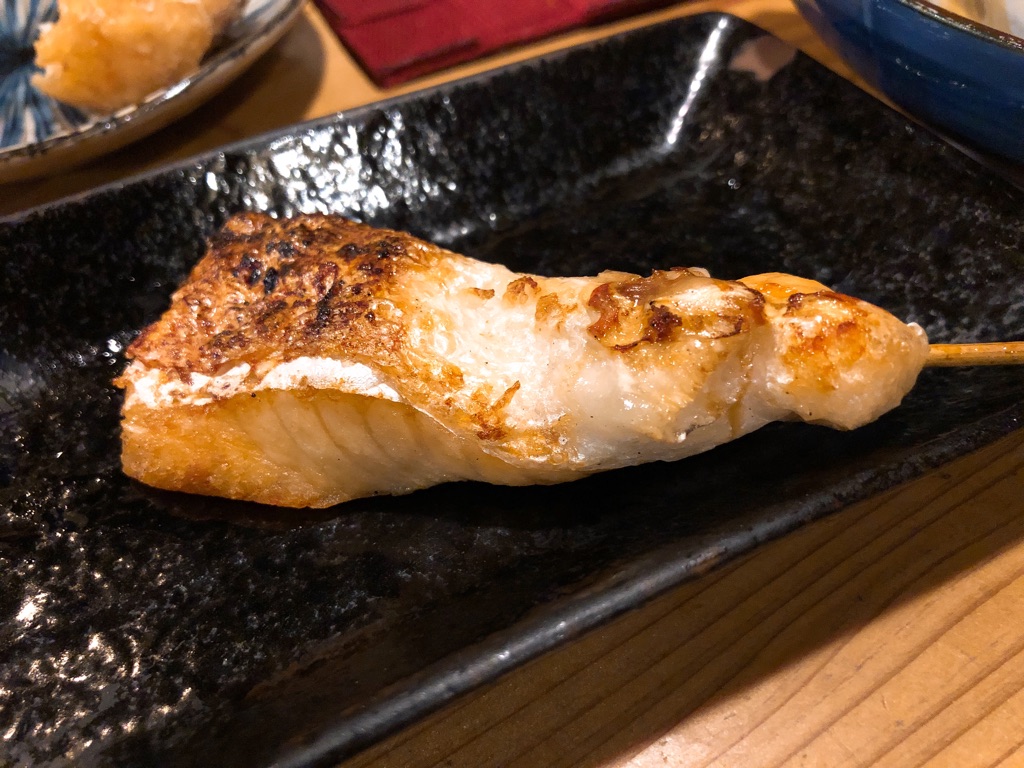 特にこの日、店主から「オススメですよ」と言われてオーダーした寒鰆の串(4本盛りの写真、左から2番め)は、しっとりとした身に意外な脂を含んでいて、鯖と間違うほどにおいしかった。