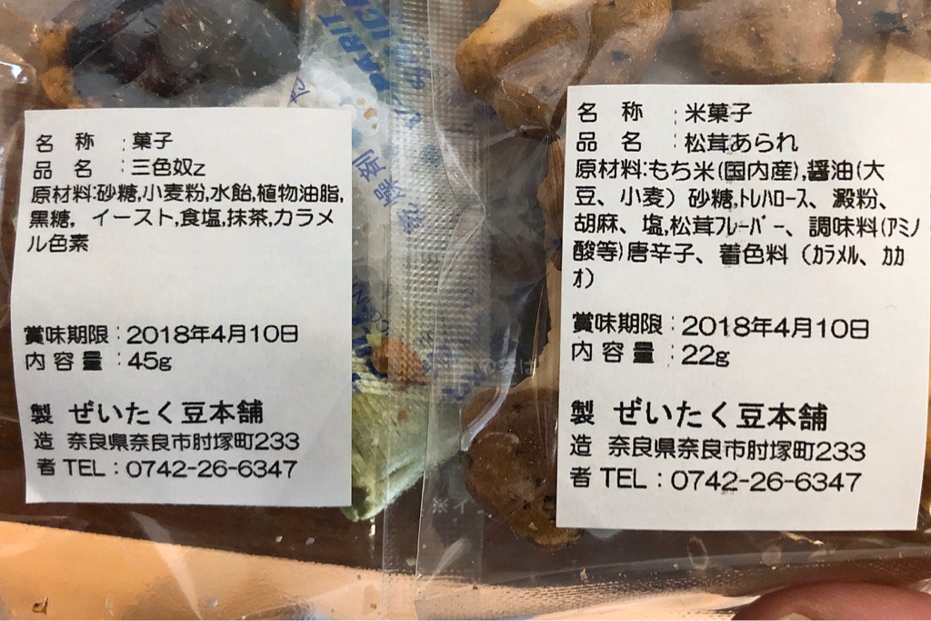 どちらも奈良の「ぜいたく豆本舗」製。ぜいたくなのに「飾らない」……