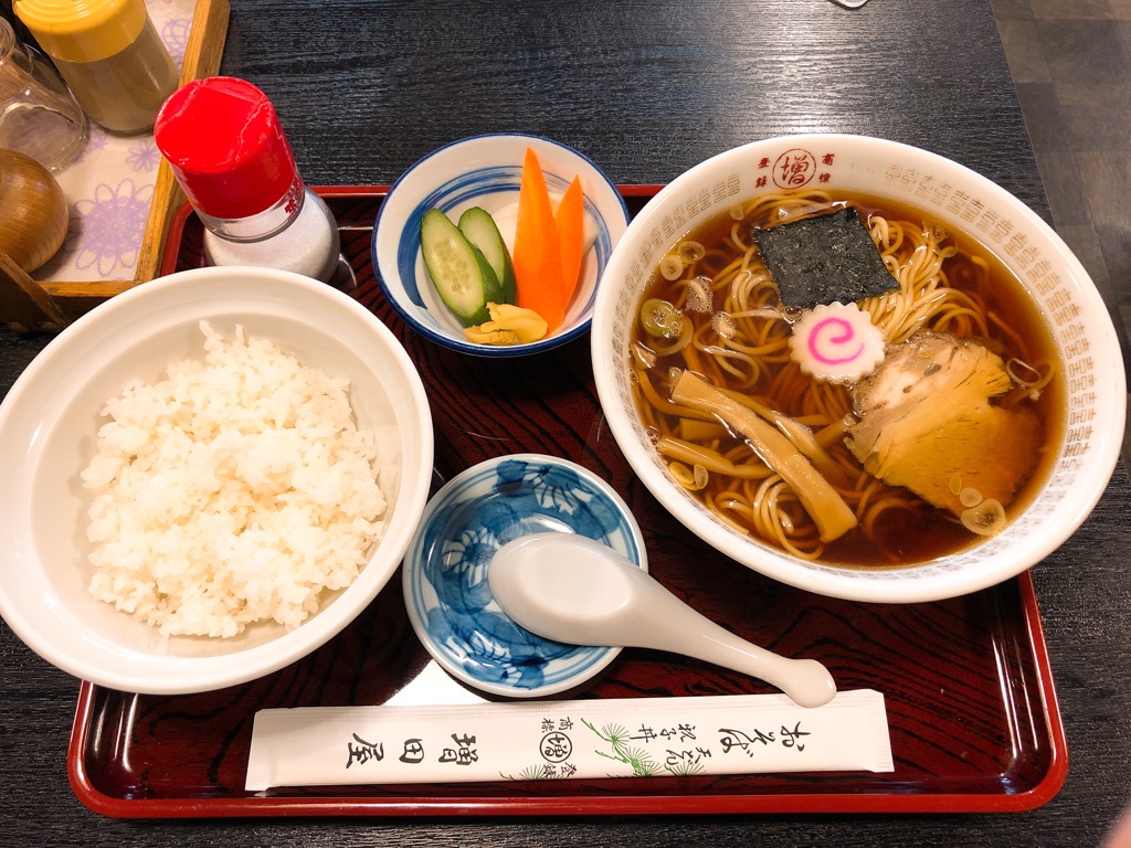 純和風の中華そば。赤羽の日本蕎麦店「増田屋」にて食す。半ライス付きで750円。